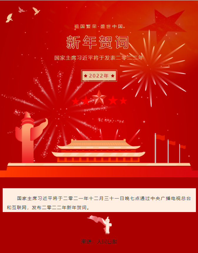 国家主席习近平将发布二零二二年新年贺词